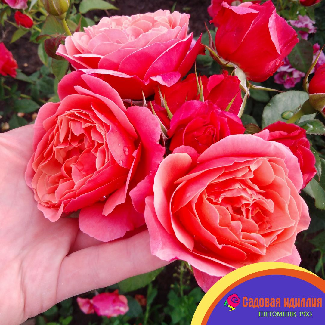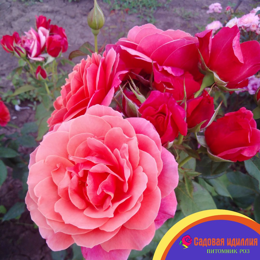 Крупные, махровые цветы собраны в небольшие соцветия. Цвет красивый, коралово-розовый с более насыщенным центром. Аромат легкий. Цветок держит долго, цветение обильное на протяжении всего сезона. Кусты энергично нарастают, компактные, но достаточно высокие для флорибунды, до 120 см. Листва темно-зеленая полуглянцевая.
