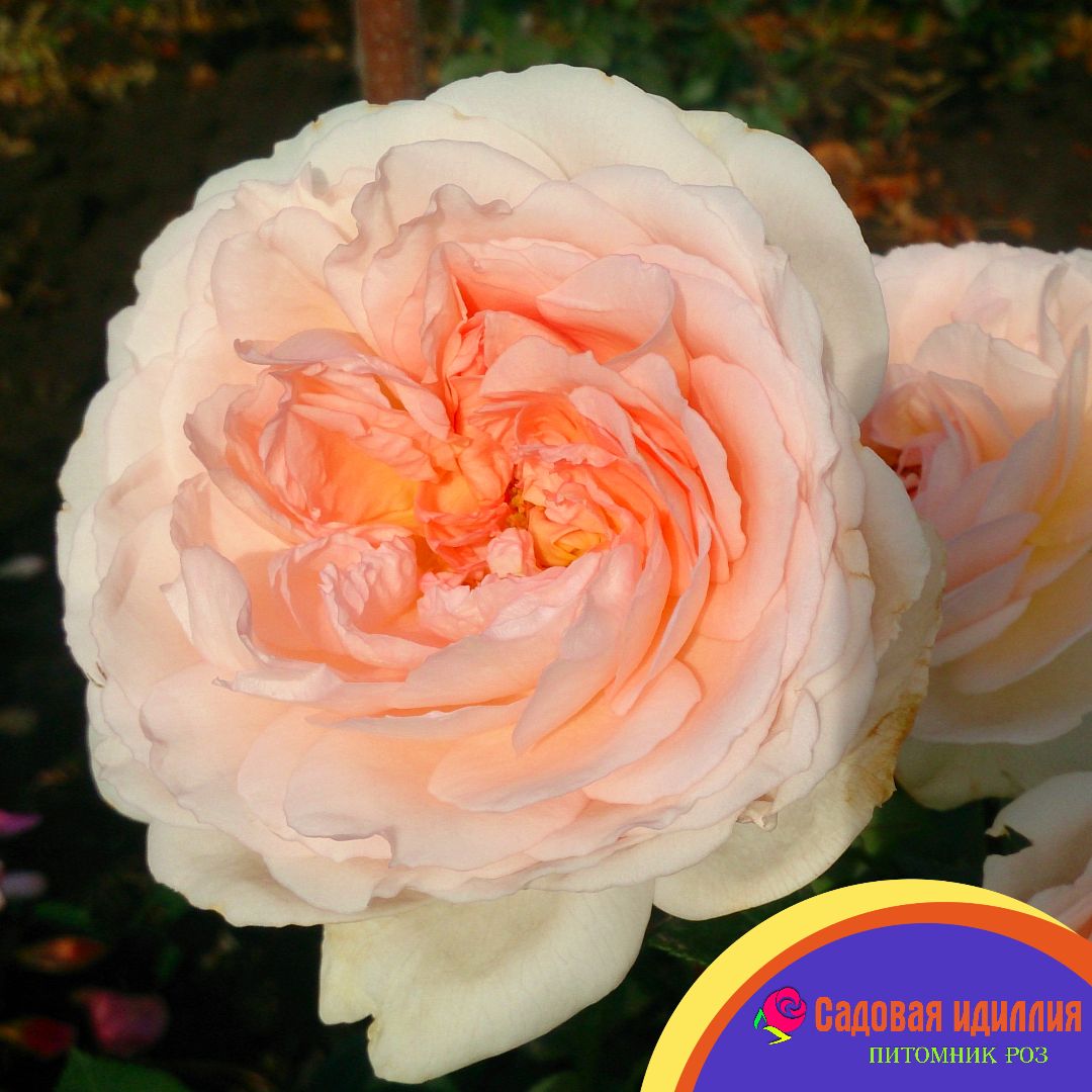 Цветы густомахровые, чашевидной формы. Цвет кремово-розовый с абрикосовой серединкой, цветы очень яркие.Аромат сильный с фруктовыми нотками, самый сильный аромат в утреннее время. Цветение обильное с небольшими перерывами. Кусты густые, прямостоячие, но некоторые побеги могуг наклонятся под весом кисти цветов. Листва темно-зеленая, полуглянцевая.