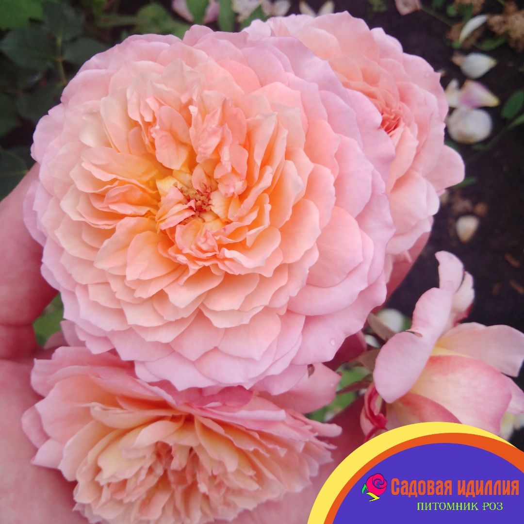 Цветы густомахровые, крупные, чашевидной, а после раскрытия, плоской формы. Цветок окрашен в оранжево-персиково-розовые тона. Аромат сильный. Цветы не любят затяжных дождей. Куст крепкий, прямостоячий, на побегах формируются соцветия по 3-5 цветов. Цветение обильное, практически непрерывное до заморозков. Листва тёмно-зелёная, матовая. Сорт хорошо подходит для массовых посадок.