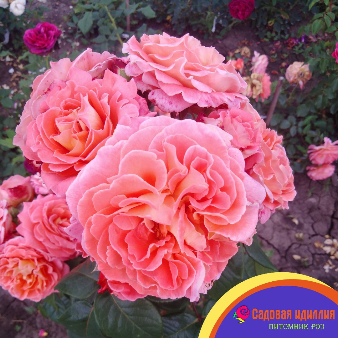 Цветы крупные, густомахровые, в форме густонаполненной чаши. Цвет лососево-розовый с белой обратной стороной. Аромат средней интенсивности с нотками цитрусовых. Цветение обильное, повторное, в соцветиях. Цветы устойчивы к солнечным лучам. Куст красивой формы, пышный, раскидистый, высота около 80 см., но бывает достигает и 120 см. Листва зелёная, блестящая.
