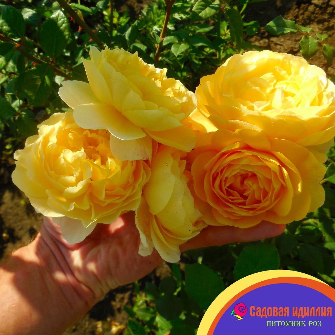 Крупные, махровые цветы. Окраска ярко-желтая. Цветы устойчивы к солнцу. Аромат сильный с нотками лимона, с возрастом запах становится насыщенее. Цветение повторное, с перерывами. Кусты округлой формы, густые. Идеально подходит для переднего плана.