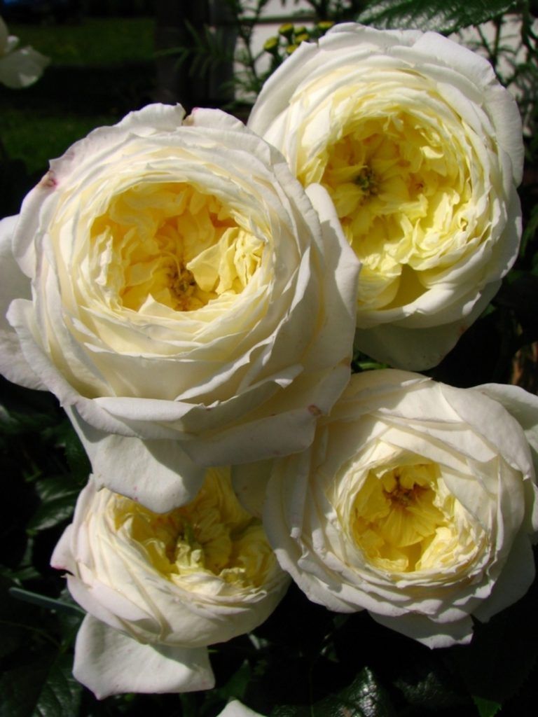 Прекрасная плетистая роза с крупными, махровыми цветами чашевидной формы. Цвет нежно-кремовый с лимонным центром. Аромат прекрасный с нотками цитрусовых. Цветение очень обильное, многократное. Куст энергичного роста. Листва глянцевая, тёмно-зелёная. Сорт очень выносливый!