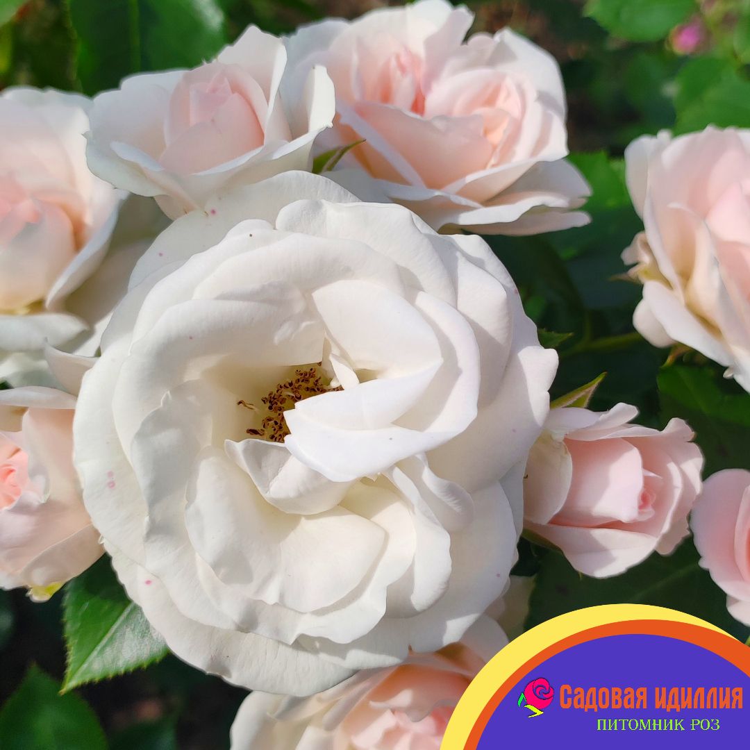 Цветы махровые. Цветок в полуроспуске с розовым оттенком, но когда полностью открывается становиться чисто белым. Аромат слабый, еле заметный. Цветение очень обильное, практически непрерывное. Цветёт всегда в соцветиях по 5-15 бутонов. Цветы устойчивы как к дождю, так и к солнцу. Кусты невысокие, но широкие. Куст энергично растёт образуя плотную крону. Побеги гибкие. Листва глянцевая, очень устойчива к заболеваниям. Имеет знак ADR, который присваивается розам, сочетающим декоративность с устойчивостью к болезням.