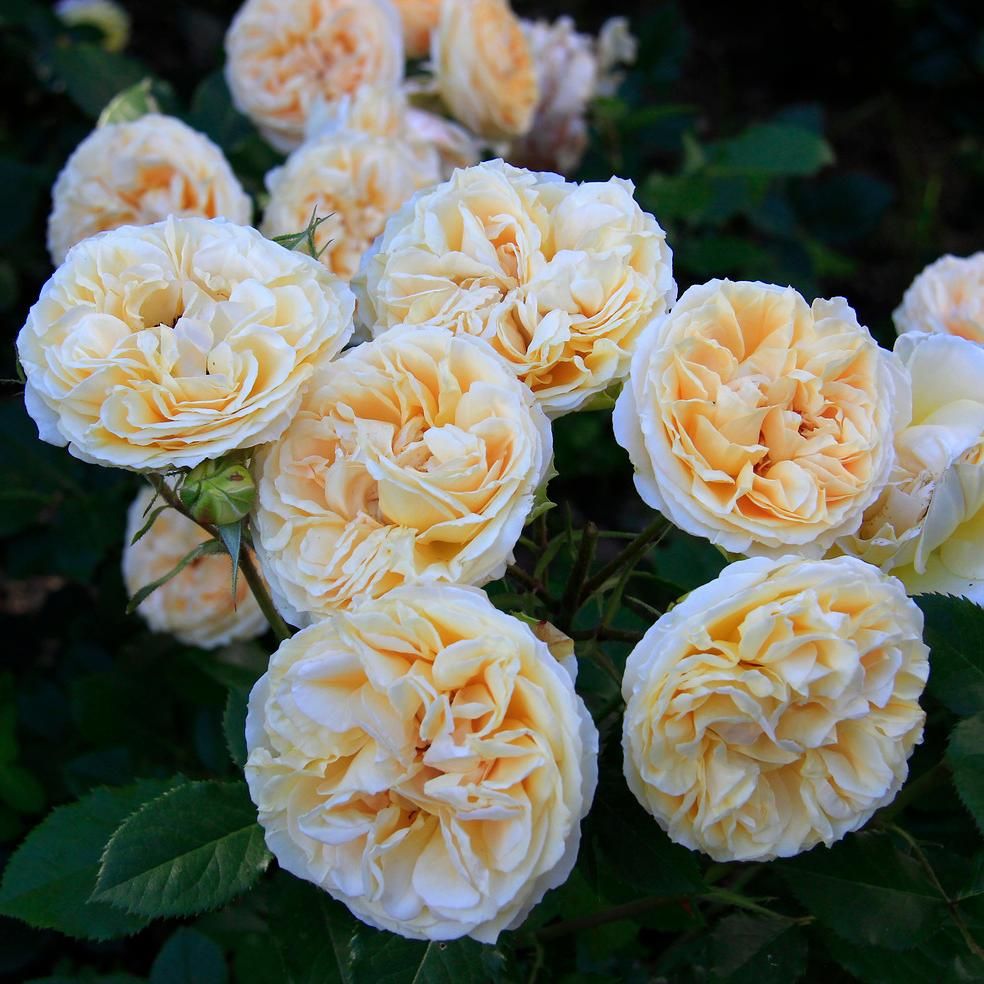 Цветы густомахровые, чашевидной формы. Цвет абрикосовый. Аромат очень приятный, насыщенный, фруктовый с нотками персика, абрикоса, чая и ванили. Цветение обильное на протяжении всего сезона. Цветёт Женевьев Орси в соцветиях.Цветы устойчивы к дождю и солнцу. Кусты крепкие с прямыми побегами. Листва глянцевая, обладает хорошей устойчивостью к грибковым заболеваниям.