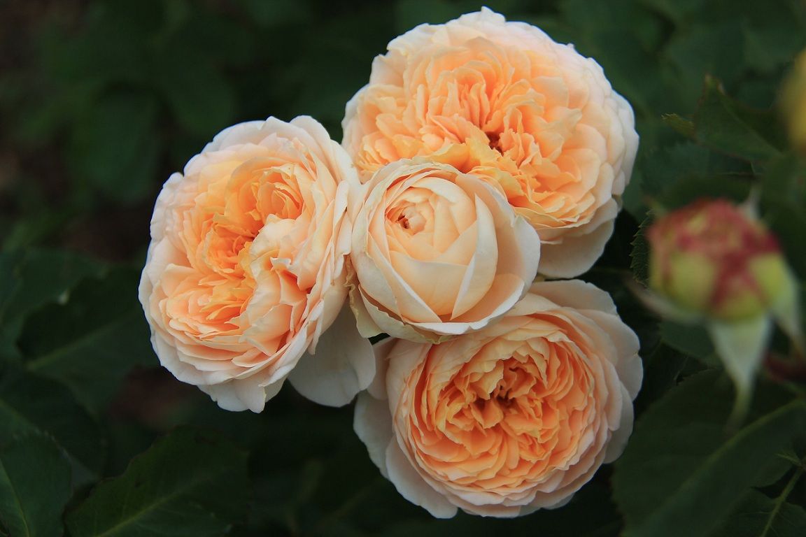 Цветы крупные, густомахровые, в начале роспуска шаровидной формы, затем форма становится чашевидная. Цветок по краю белый, а середина окрашена в абрикосовые, кремовые и розовые тона. Цветение обильное, в пышных соцветиях. Аромат приятный, с нотками абрикоса, сирени и ландыша. Цветы устойчивы к солнцу, при затяжных дождях портятся. Кусты прямостоячие, энергично растут. Листва блестящая, устойчивость к грибковым заболеваниям очень хорошая.