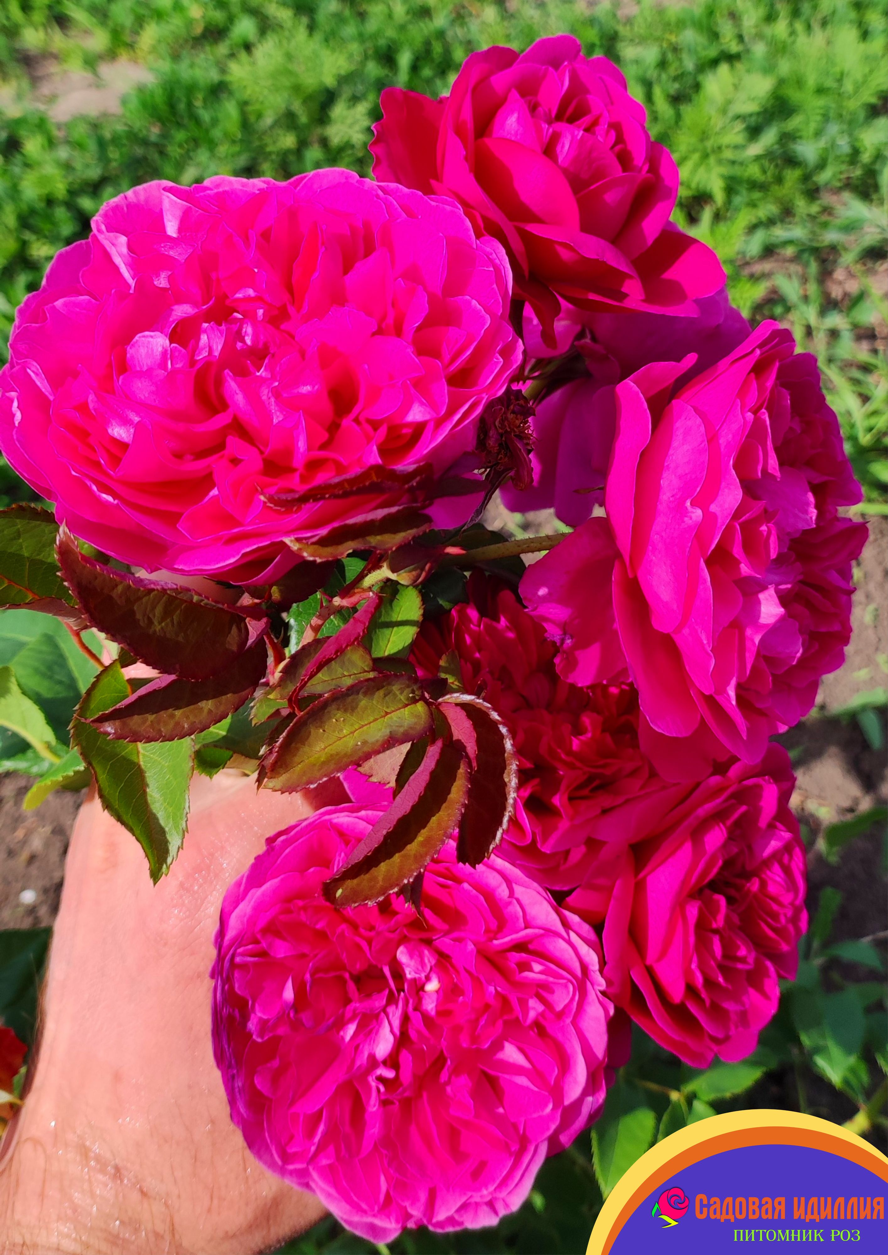Цветки крупные, густомахровые, розетковидные. Окрас насыщенный, пурпурно-розовый. Цветение обильное и практически непрерывное. Аромат приятный, фруктовый. Цветы не портятся от дождя, при сильной жаре немного подгорают. Куст крепкий, пышный. Побеги прямые.Сорт имеет хороший уровень морозостойкости и устойчив к грибковым заболеваниям.
