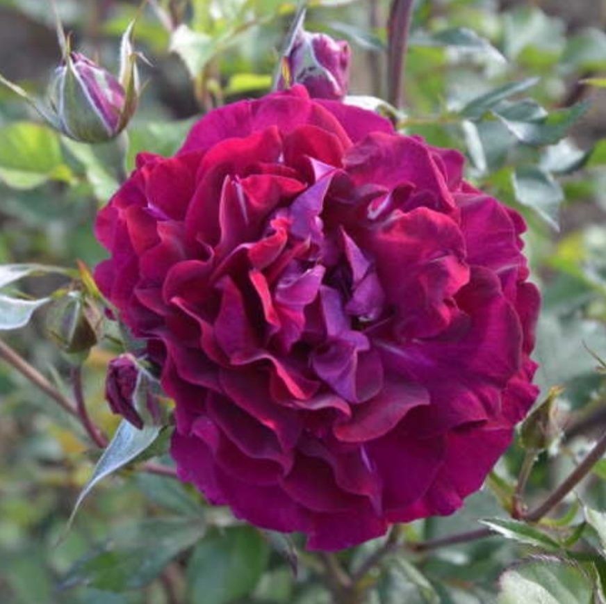 Цветки махровые, крупные. Окрас фиолетовый с малиново-сиреневым оттенком. Аромат насыщенный. Цветение обильное, повторное. Куст прямостоячий, компактный, достигает в высоту до 80см. и в ширину до 70см. Сорт обладает высоким уровнем морозостойкости и хорошо противостоит грибковым заболеваниям.