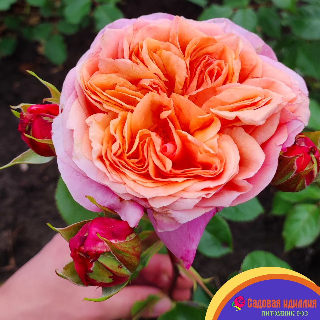Цветы крупные, густомахровые(до 100 лепестков), чашевидной формы. Аромат лёгкий еле заметный. Цветы устойчивы к дождю и солнцу. Цветет данный сорт на протяжении всего сезона. Кусты прямые, с крепкими побегами.
